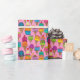 Your gift will be even sweeter when you wrap it in this colorful pattern of ice cream treats! Includes scoops of strawberry, vanilla, lime, blueberry, orange, and more, in cones and dishes, on a pink background.