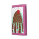 Blue and pink ice cream with chocolate drizzle and sprinkles