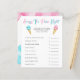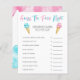 Whimsical ice cream theme gender reveal party game card featuring watercolor illustration of pink and blue ice cream on a waffle cone. The texts are editable. Perfect game to play during the shower. It lists baby essentials and asks guests to guess the price. Whoever guesses the price the closest wins!