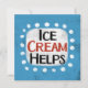 "Ice Cream Helps" is a fun text design with a white accent shape surrounded by white whimsical textured dots.