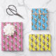A fun all-over pattern of ice cream cones. Ice creams in a pop-art style. Fun ice cream wrapping paper. Three different background colors with a pattern of gelato.