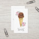 Modern and whimsical business card for ice cream shops with a watercolor illustration of a chocolate ice cream on a waffle cone with pink rose flowers.