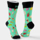 Ice cream icons. Seamless pattern. Custom background color. Custom top stripe color. Custom text on each sock.