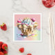 A vibrant and realistic looking 3D AI graphic of a waffle cone filled with swirls of pink, white and pastel blue cotton candy soft serve ice-cream topped with nuts, sprinkles and strawberries. The ice cream is melting over the edge of the cone and is forming puddles on the ground. The iridescent and pale pink background round off this delicious looking dessert. These are ideal for boys and girls chocolate and summer pool party theme birthday celebrations.
