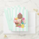 Pocket folders, set of five illustrated with a bowl of ice cream with 3 delicious scoops covered in candy sprinkles. An ice cream cone also with 3 scoops of chocolate, vanilla and strawberry. A dessert bowl filled with neopolitan flavored ice cream with a delicious cherry on top. A green and white stripes pattern in the background.