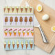 Kitchen towel with pastel colored rows of illustrated ice creams and lollies with an ice cream shaped logo to customize and make it unique to you.