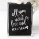 An elegant cutting edge wedding sign, features the text "All you need is love and ice cream" in a extroverted script font, the brush texture adds a spontaneous and playful feeling. The background color can personalized according to your needs and preferences, please contact me if you have any special request.