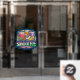 Window Cling, Size: 11.00" x 8.00", Style: Opaque Design: All-over White Underbase, Shape: Rectangle, Display: Back of Cling