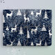 This whimsical gift wrap features a festive Nordic woodland scene with deer, Christmas trees, and snowflakes. With tiny golden stars, it is ready to add a touch of magic and wonder to your winter holiday celebrations with your loved ones. Midnight blue background, white deer and trees, and slate blue-gray snowflakes. Original artwork by Marketa Stengl.