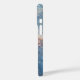 Phone case featuring artistic ice crystals on a window in a blue, pale orange and ivory color setting. You can customize or delete the monogram text.
