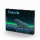 A peaceful moment in the long Arctic night. A Polar Bear rests at the edge of an open area in the pack ice.The Northern Lights glow in the distance; bright stars twinkle overhead. Text reading "Canada" appears in glowing blue. Polar bears are endangered. How much longer will scenes like this be able to occur? Please help save Polar Bears from extinction.