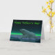 A peaceful moment in the long Arctic night. A Polar Bear rests at the edge of an open area in the pack ice. The Northern Lights glow in the distance; bright stars twinkle overhead. Text reading "Happy Father's Day!" also appears.