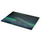 A peaceful moment in the long Arctic night. A Polar Bear rests at the edge of an open area in the pack ice. The Northern Lights glow in the distance; bright stars twinkle overhead. Customize by adding your own text.