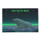 A peaceful moment in the long Arctic night. A Polar Bear rests at the edge of an open area in the pack ice. The Northern Lights glow in the distance; bright stars twinkle overhead. Add your own text. Polar bears are endangered. How much longer will scenes like this be able to occur? Please help save Polar Bears from extinction.