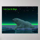 A peaceful moment in the long Arctic night. A Polar Bear rests at the edge of an open area in the pack ice.The Northern Lights glow in the distance; bright stars twinkle overhead. Add your own text.
