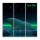A peaceful moment in the long Arctic night. A Polar Bear rests at the edge of an open area in the pack ice. The Northern Lights glow in the distance; bright stars twinkle overhead. Add your own text.