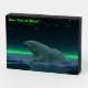 A peaceful moment in the long Arctic night. A Polar Bear rests at the edge of an open area in the pack ice. The Northern Lights glow in the distance; bright stars twinkle overhead. Add your own text. Polar bears are endangered. How much longer will scenes like this be able to occur? Please help save Polar Bears from extinction.