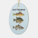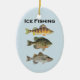 This ice fishing ornament includes 3 popular panfish; yellow perch, bluegill sunfish, and white perch. Ice fishing is a popular winter sport in cold climate areas of North America. Despite cold temperatures, this specialized form of freshwater fishing can be rewarding.