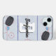 This personalized phone case has a ice hockey fans design with a hockey ring and two illustrated pucks. Personalized this phone case with a first or last name and a initial. A great personalized sports gift to give the ice hockey fan in your life that play card games.