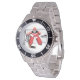 The goalie in ice hockey is a critical position and also one where you want to be wearing a lot of padding. This great design of an ice hockey goalie all padded up standing in his goal ready for the shot. The goalie is wearing red. This ice hockey goalie looks great on this watch. Perfect for yourself or as a gift