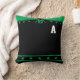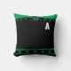 Easy to edit ice hockey or lacrosse custom jersey design throw pillow. Green accents, and the background color can be changed, just click 'CUSTOMIZE'. Just use the boxes to the right of the image to insert your own choice of name and number. You can also add either a captains 'C' or alternate 'A' or the sweater number on the front too.