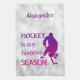 Design: "Hockey is my favorite season" + hockey player silhouette + personalize with the name of the hockey lover.