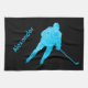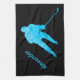 Turquoise personalized hockey skate towel with hockey player - a useful ice hockey gift considering it is essential to dry out the blades after practice.
