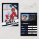 Parents of little league ice hockey players can proudly share their kids' achievements on the field with these customizable blue and black trading cards. Both photos, front and back, can be altered to showcase your own little leaguer, including a changeable Jersey Number. Nearly all text on the back can be modified, including player stats, bio, position. Providing plenty to distribute among friends and relatives, as well as for your child to trade them with other kids who also have collectible trading cards of themselves. It creates a distinctive ice hockey card collection, making for unique gifts.