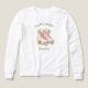 Any girl who loves to ice skate will love this shirt that has a pair of beautiful pink figure skates that are adorned with green flowers at the top. Typography says "Ice Ice, BABY!" and then there's a template provided for you to put in your daughter's name.