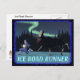 Image of a jogger being chased by a moose while running on a dark winter night. The northern lights glow overhead. Try running at minus 25 degrees, or maybe its a bit warmer but there is a nasty windchill. And since winter has only once color scheme, dark and white, those darn moose are very difficult to see. Let everyone know you are one of the small group of elite runners who do not let cold, dark, snow and ice, or moose having a bad day, keep you from pounding out those miles on the road.