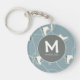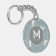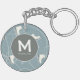 Stylish trendy bluish gray ice skate and snowflake pattern keychain, personalized with your monogram initial and name.