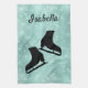 Turquoise green personalized ice skate towel for figure skater - a useful ice skating gift to dry out blades after practice.