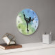 Ice Skater Design Wall Clock featuring the a pair of white ice skates against a blue and green starry background, with customizable text.