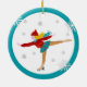 This fun Christmas Ornament features a graphic of an ice skater on the front and the back. The picture is surrounded by a teal border. On the front is a space for a custom message or name.