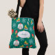 Add a festive custom touch to your holiday shopping trip with this fun teal Christmas pattern with ice skates, sweaters, snowflakes, and mittens. Add your family monogram initial for a personalized touch!