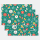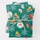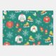 Add a festive custom touch to your home holiday presents with this fun teal Christmas pattern wrapping paper sheet set with ice skates, sweaters, snowflakes, and mittens. Add your family monogram initial for a personalized touch!