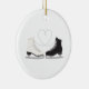 Lightweight, smooth, pure white ornament with nice sheen. Perfect size to be seen from across the room ... and to attract closer inspection! Price was great for ordering enough for the whole family! Clear, bold black design just as requested. Matches the order exactly. Just so nice!
