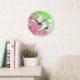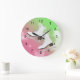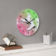 Ice Skates Design Wall Clock featuring the a pair of white ice skates against a green and red starry background.