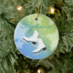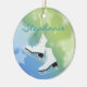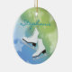 Ice Skates Ornament. with a pair of white ice skates on a lime green and aqua blue starry background. All text customizable, front and back!