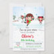 This winter skating theme invitation featuring cute little girls skating on a pond and making a snowman.