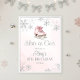A beautiful ice-skating welcome poaster featuring soft pink tones, elegant silver snowflakes, and watercolor ice skates. Perfect for winter birthdays and girls skating parties.