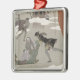 Ice Skating on the Frozen Lake, illustration for Metal Ornament