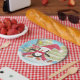 Some fun paper plates for your kids Christmas party with the illustration of a cute penguin ice skating . © ArianeC Illustrations