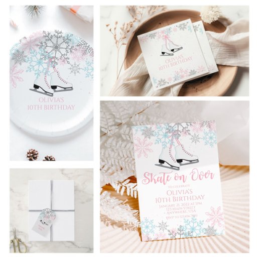Ice Skating birthday party for girl with Pink, blue and silver glitter snowflakes.