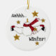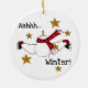 A snowman with a long red scarf ice skates while surrounded by golden stars and text reads "Aahhh...Winter!" on our Ice Skating Snowman keepsake holiday ornament.