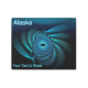 A blue-toned fractal image resembling a swirling group of whales under polar ice; perhaps beluga or minke whales which frequent the poles. Text reading "Alaska" appears in glowing blue and white. Customize by adding your own additional text.