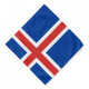 The Icelandic flag is a white-fimbriated red cross on a blue field. The used colors in the flag are blue, red, white. The proportion of the Icelandic flag is 18:25. The Flag of Iceland was adopted in 1944.