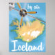 Iceland vintage travel flight poster. Iceland cartoon air travel poster print.