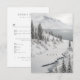 This RSVP card, featuring a breathtaking wintery landscape with mountains, forest, and water, complements the Iceland-inspired wedding collection. It includes meal choices, perfect for couples seeking a nature-infused, minimalist wedding design with a touch of adventure.