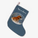 Perfect! Exactly what I ordered! I uploaded a picture of my blue chow, and the screen print was incredible. the back side of the stocking was the red and black checkered print. my puppy's name was also printed on the cuff of the stocking. PERFECT! Highly recommend this product! My puppy's name was screen printed onto the cuff of the stocking, the font was perfect!
